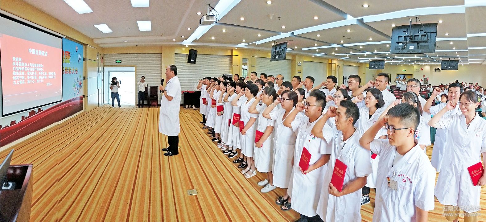 8月19日,是中國首個“醫(yī)師節(jié)”。8月21日下午,瑞麗市召開表彰大會,40名來自瑞麗市不同醫(yī)療崗位的醫(yī)師代表莊嚴(yán)宣誓:“我志愿獻身人類的健康事業(yè),自覺維護醫(yī)學(xué)的尊嚴(yán)和神圣,敬佑生命、救死扶傷、平等仁愛……”,用別樣的方式慶祝節(jié)日。