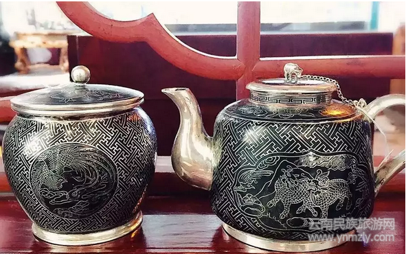 在烏銅走銀展區(qū),云南省非物質(zhì)遺產(chǎn)代表性傳承人袁昆林是晉寧區(qū)晉城鎮(zhèn)天城門人,他曾獲得云南省第五屆“中國(guó)工藝美術(shù)大師”稱號(hào)。此次參展他的各類精品烏銅走銀頗受歡迎,十多把茶壺被“私人定制”。他說(shuō),此次來(lái)參展很多老朋友聞?dòng)嵍鴣?lái)暢談手工技藝,還結(jié)交了國(guó)內(nèi)外的藏家和玩家,很有收獲。□李宗蓉 吳敏昆