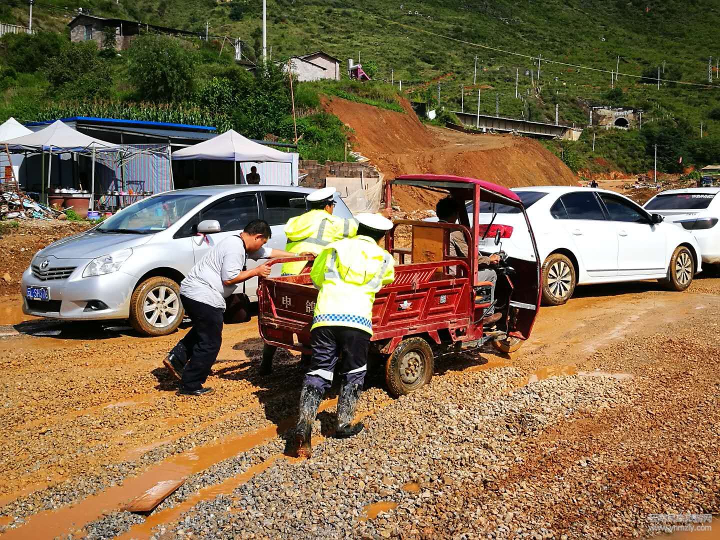 夏季雷雨過后,泥濘不堪的道路上,他警服上、臉上、帽子上沾滿了泥漿,汗水濕透了衣背,這就是是云南大理雙廊鎮(zhèn)內(nèi)環(huán)海東路上普通執(zhí)勤交警的真實(shí)寫照。