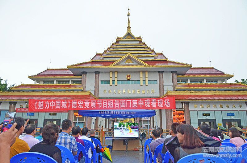 在姐告國門廣場,工作人員專門擺放了電視機(jī)播放競演盛況,吸引了周邊群眾和等待通關(guān)的邊民駐足觀看。雖然天空飄著雨,卻依然阻擋不了大家觀看競演節(jié)目的熱情。在姐告國門書社工作的緬甸華僑趙紅仙告訴記者,下午的時候聽說晚上7點(diǎn)將播放《魅力中國城》德宏VS南川的節(jié)目,她吃了飯就來國門廣場“號了”一個位子等著看競演。趙紅仙說,雖然她來瑞麗工作已經(jīng)好幾年,但是德宏的很多地方她都沒去過。這場競演讓她足不出戶就充分領(lǐng)略了德宏的美。而節(jié)目中講述的中緬友誼歷史,則讓她備受鼓舞,更加堅定了她扎根瑞麗,為中緬友誼貢獻(xiàn)力量的信心。