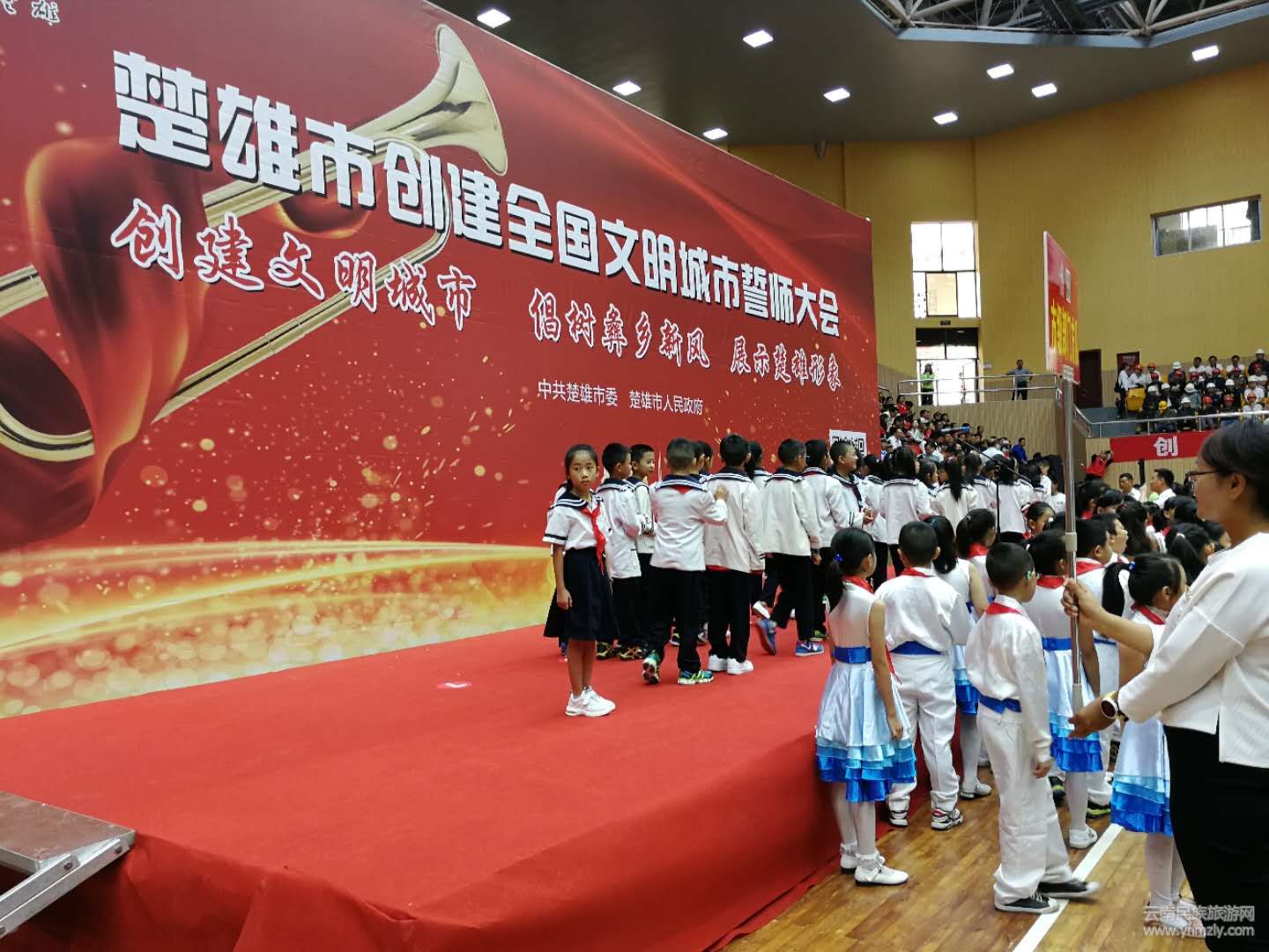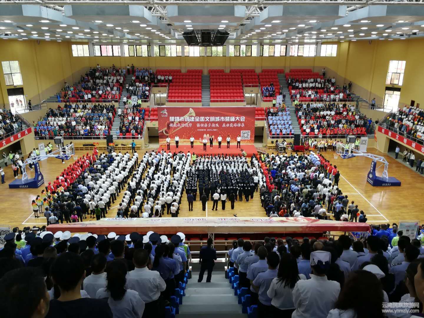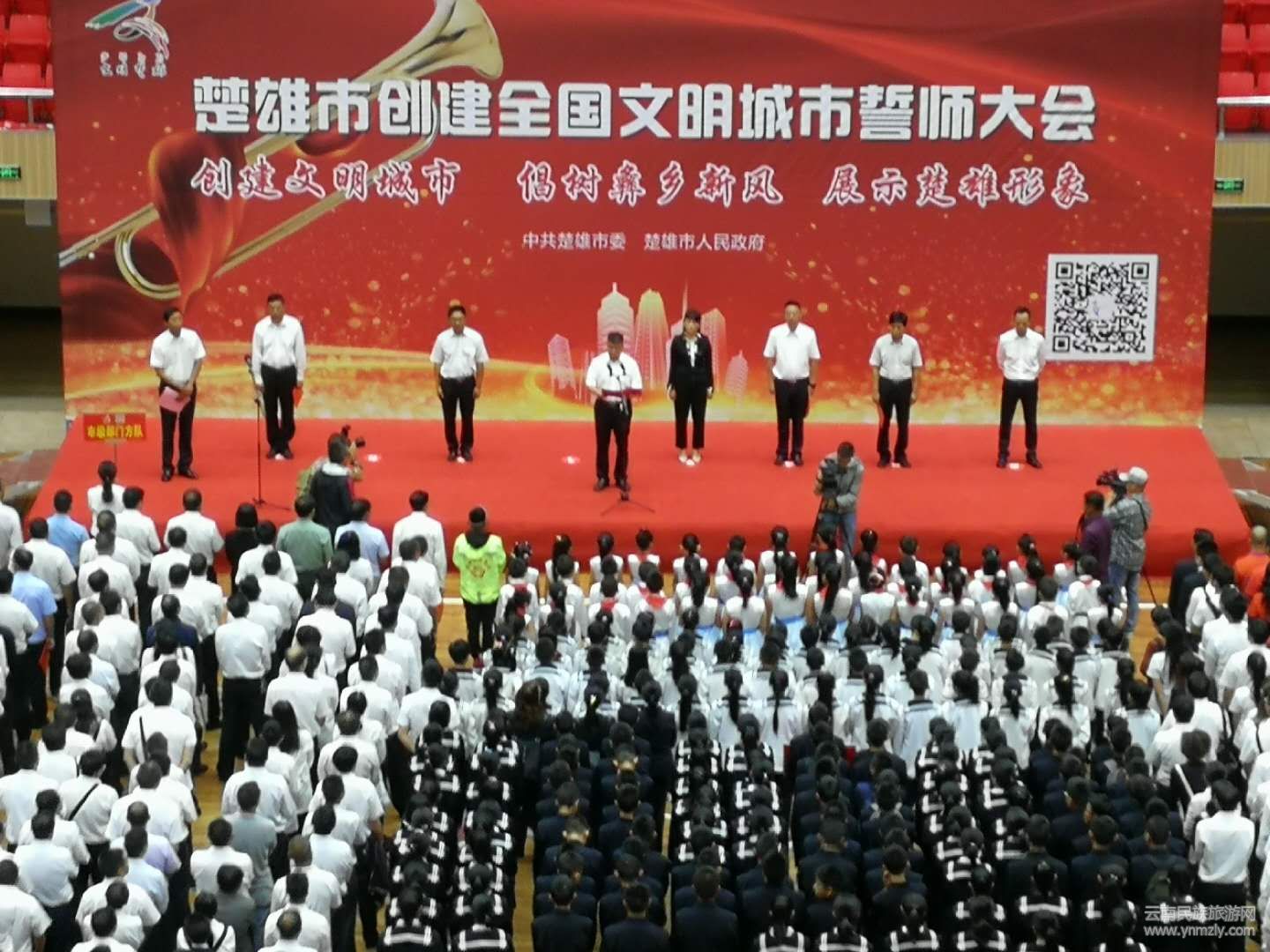 9月9日上午,為全方位提升創(chuàng)建知曉率、參與率和社會(huì)影響力,楚雄市委、市政府在州體育館舉行楚雄市創(chuàng)建全國(guó)文明城市誓師大會(huì)暨文明城市宣傳活動(dòng),駐楚中央和省州各單位、市屬各部門(mén)、在校學(xué)生、城市居民等3600余名各界代表參加。