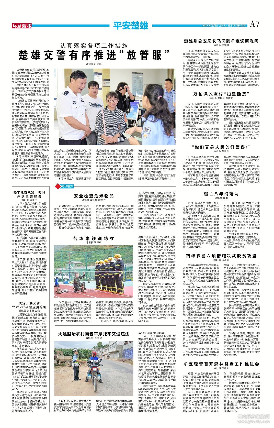 目前,楚雄州公安交管“放管服”改革工作正在有序推進中。(文章來源環(huán)球游報2018年9月14日第1157期A7)