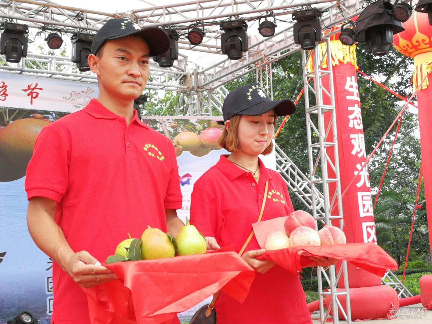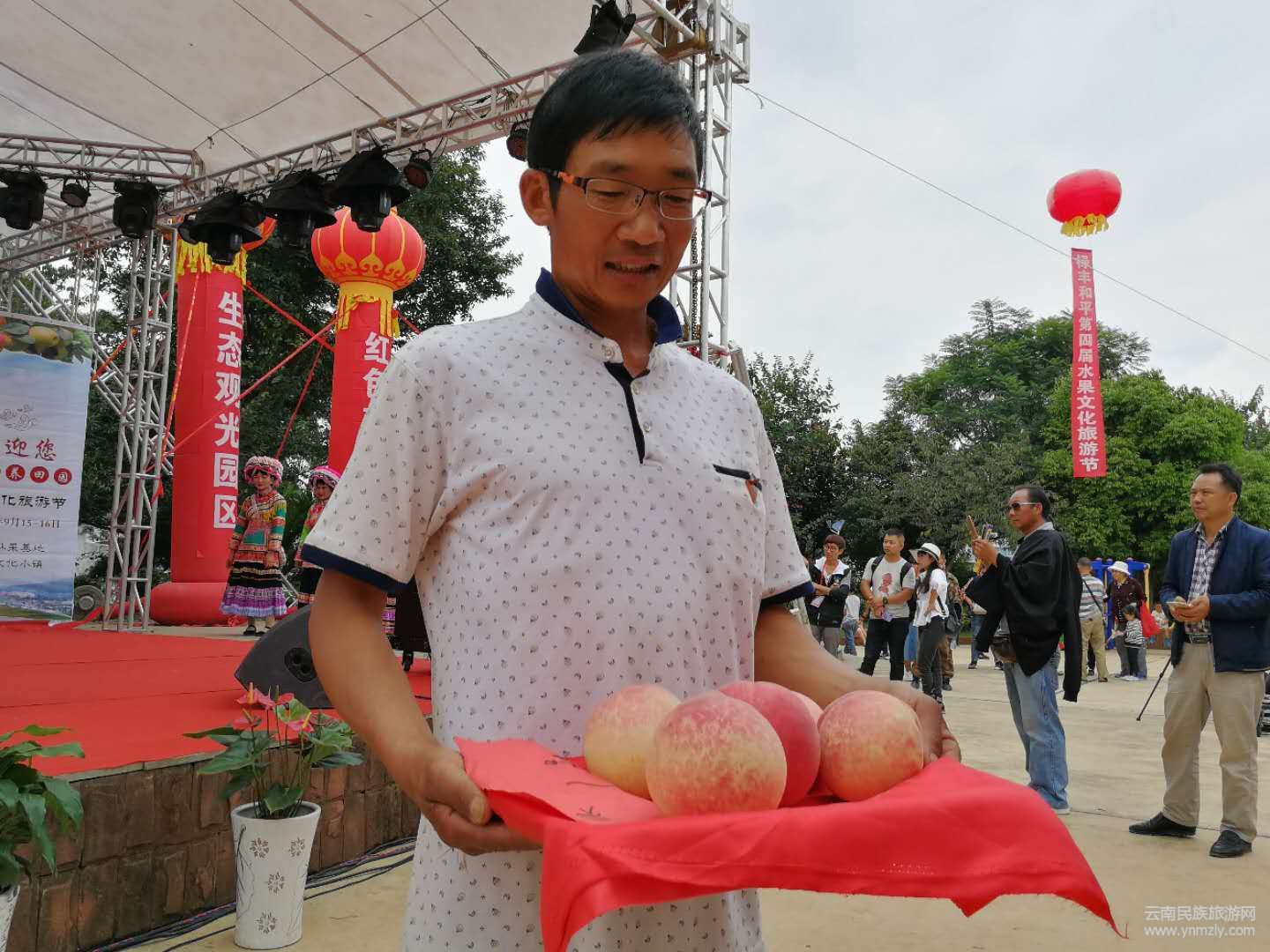 開幕式上,由漢族、彝族、苗族等各族人民帶來的文藝演出異彩紛呈,歌曲動聽,舞蹈優(yōu)美。別開生面的“梨王”“桃王”評比活動,吸引了無數(shù)游客。在和平鎮(zhèn)文化廣場上,削梨、吃梨比賽及各種趣味互動游戲正在進(jìn)行,來自各地的游客和當(dāng)?shù)卮迕駛円黄饏⑴c其中,盡情享受節(jié)日的歡樂。游戲結(jié)束,游客在果農(nóng)的帶領(lǐng)下親臨果園,一邊體驗水果采摘樂趣,一邊欣賞生態(tài)和平的果園風(fēng)光。