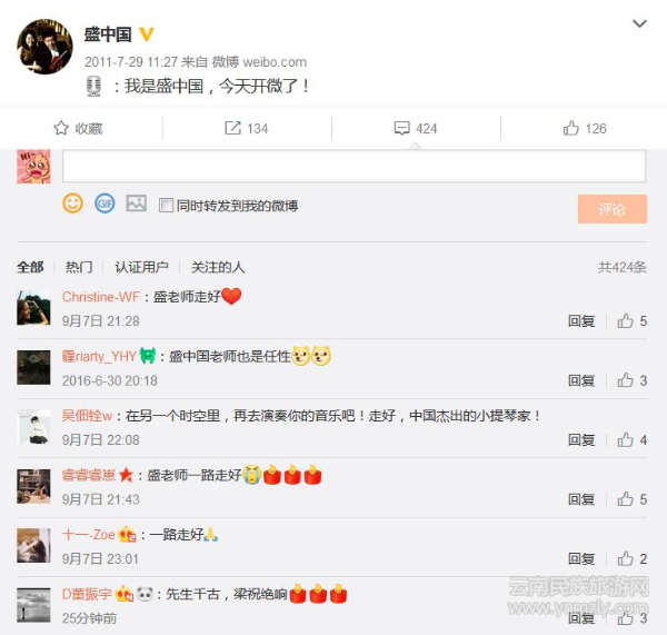 7日晚,知悉盛老逝世的消息,網(wǎng)友們紛紛表示悼念,并在他的微博唯一一條博文下面留言,追思這位偉大的藝術(shù)家。