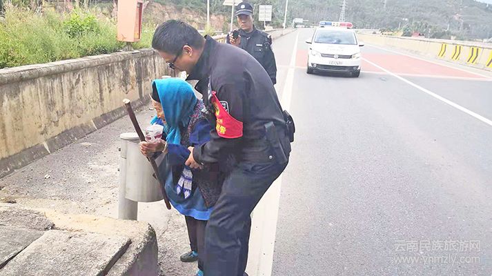 近日,大理市公安局鳳儀派出所民警在出警路上發(fā)現(xiàn)一名老人手拄拐杖闖入高速公路,正艱難行走,民警立即將其帶離高速路,及時消除了安全隱患。