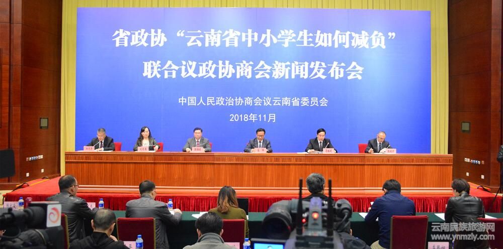 11月12日下午,云南省政協(xié)在昆明海埂會(huì)堂舉行新聞發(fā)布會(huì),決定2018年11月14日在云南省政協(xié)大禮堂召開首次聯(lián)合議政協(xié)商會(huì),會(huì)議主題圍繞“云南省中小學(xué)生如何減負(fù)”問題展開討論。目前,會(huì)議籌備工作已基本完成,屆時(shí)將有11名政協(xié)委員、專家圍繞主題協(xié)商從不同的角度建言獻(xiàn)策,各個(gè)政府職能部門并作出相關(guān)的回應(yīng)。