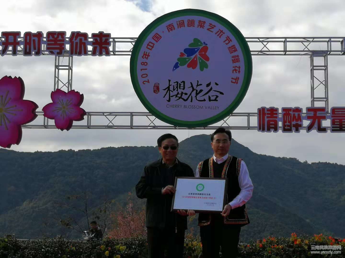 11月25日,以“櫻花開時等你來,情醉無量助脫貧”為主題的2018年中國·南澗跳菜藝術節(jié)暨櫻花節(jié)在無量山櫻花谷開幕。原云南省政協副主席、農工黨中央副主席、云南茶葉流通協會會長陳勛儒出席,并為南澗縣頒發(fā)“2018年中國茶旅融合競爭力十強縣(市)”榮譽牌匾,南澗縣委副書記、縣長王紹基致辭。