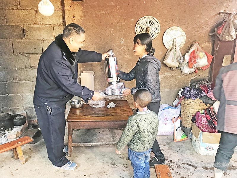 “感謝黨和政府的關(guān)心……”11月23日,耇街鄉(xiāng)土皮太村貧困戶楊支榮收到了一份特殊的禮物。昌寧縣森林公安局的結(jié)對(duì)幫扶民警、職工自掏腰包為他家送來了暖水壺、水杯、茶盤、衣物等生活必須品。當(dāng)天,昌寧縣森林公安局掛鉤的60多戶貧困戶都收到了一份同樣的禮物,貧困戶對(duì)掛鉤的幫扶干部表達(dá)了感激之情,感謝給他們的無私幫助。