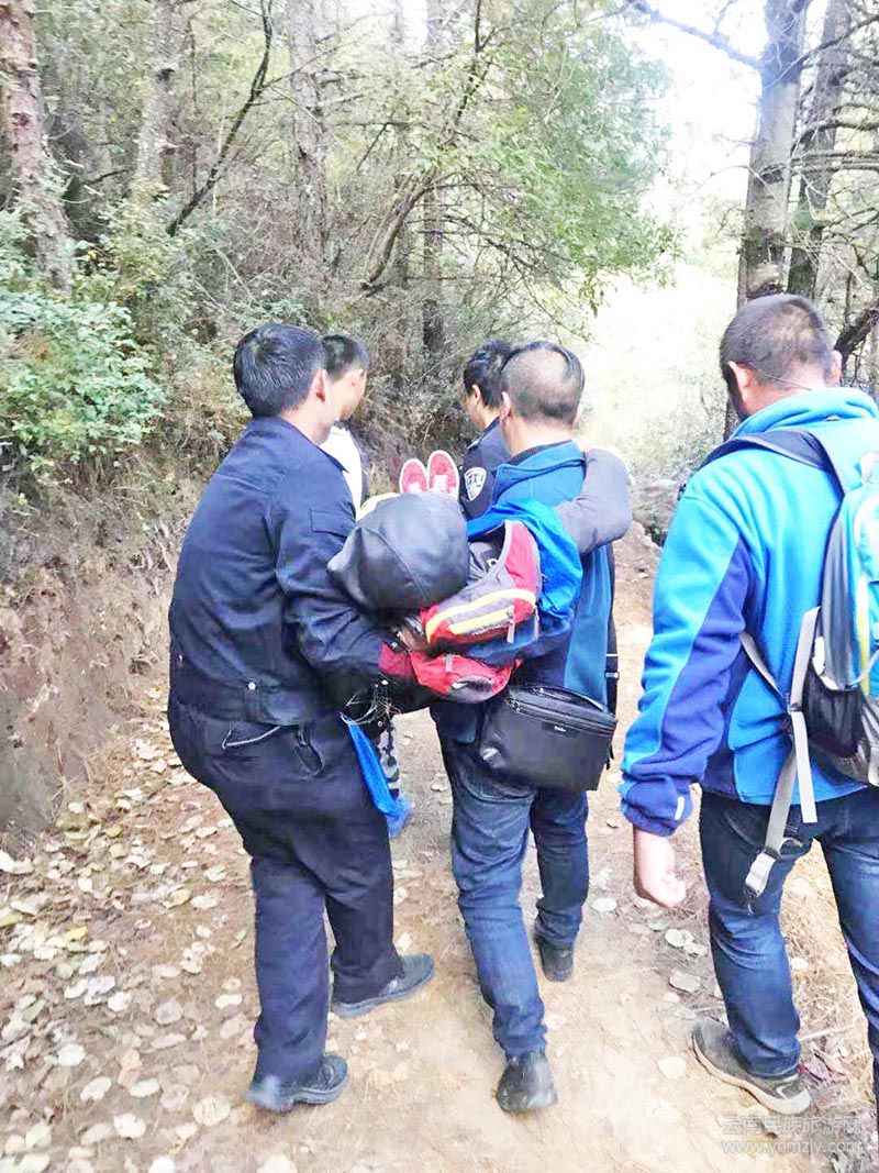 11月18日中午13時50分許,古城派出所接到110指令,報警人楊某某稱其與兩名山地車愛好者相約到蒼山騎行,途徑菠蘿寺附近時同伴趙某某因車輪卡在石縫中后不慎摔倒,無法動彈,向警方求助。