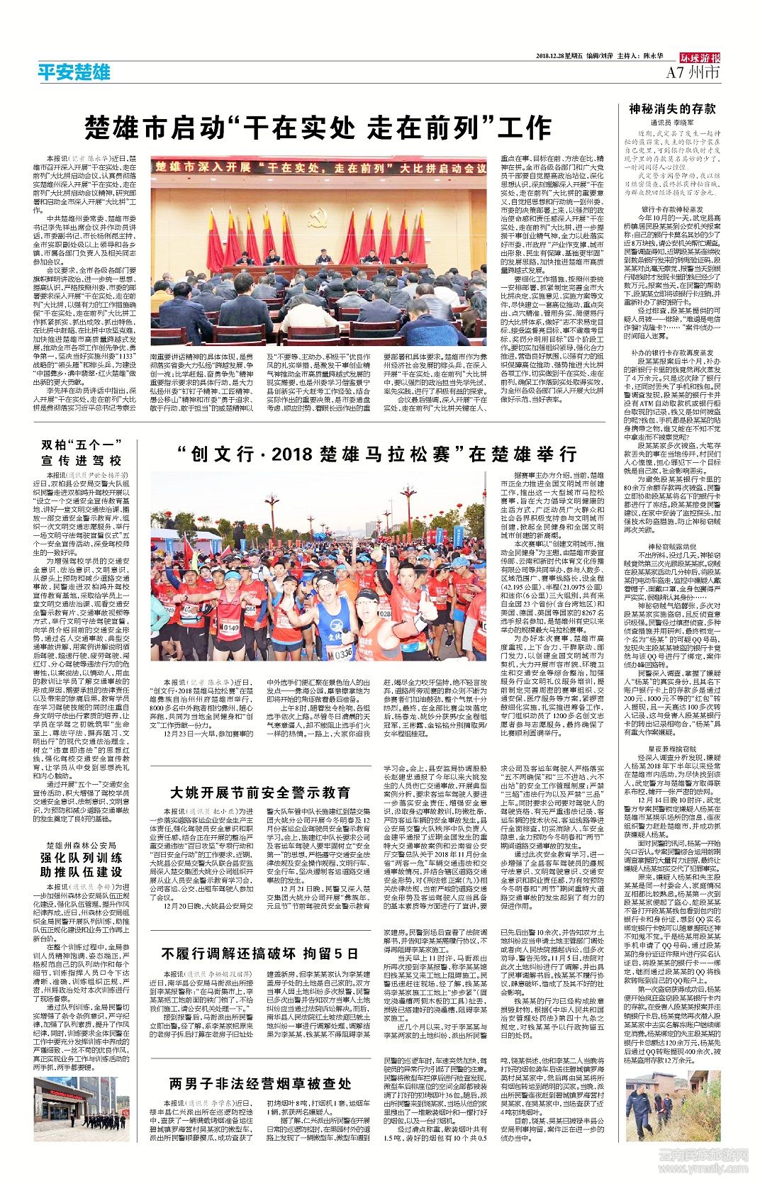 本報(bào)訊(通訊員 尹世全 楊芹芳)近日,雙柏縣公安局交警大隊(duì)組織民警走進(jìn)雙柏鴻升駕校開(kāi)展以“設(shè)立一個(gè)交通安全宣傳教育基地、講好一堂文明交通法治課、播放一部交通安全警示教育片、組織一次文明交通志愿服務(wù)、舉行一場(chǎng)文明守法駕駛宣誓儀式”五個(gè)一安全宣傳活動(dòng),深受駕校師生的一致好評(píng)。