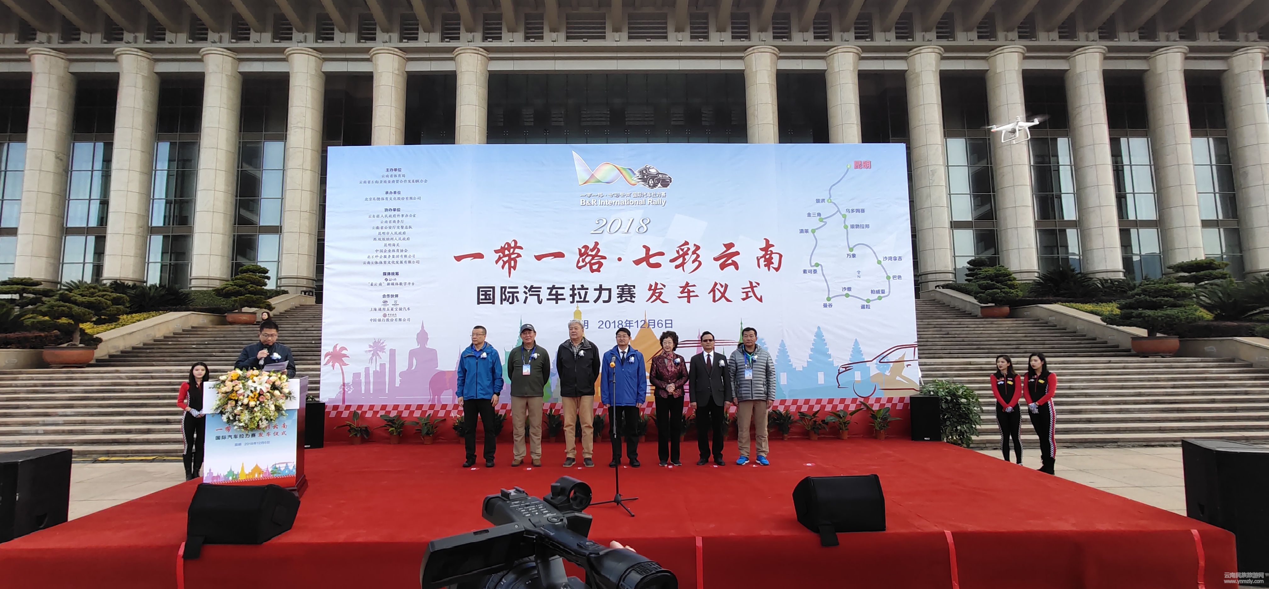 12月6日上午,由云南省體育局、云南省東南亞南亞經(jīng)貿(mào)合作發(fā)展聯(lián)合會主辦,北京高德體育文化股份有限公司承辦的2018“一帶一路•七彩云南”國際汽車拉力賽拉力賽發(fā)車儀式在海埂會堂舉行。43輛越野車組成的車隊將從昆明出發(fā)途徑老撾、柬埔寨、泰國后再返回中國,歷經(jīng)18天總里程約5000余公里,沿途將舉行多場賽事及經(jīng)貿(mào)、文化交流活動。