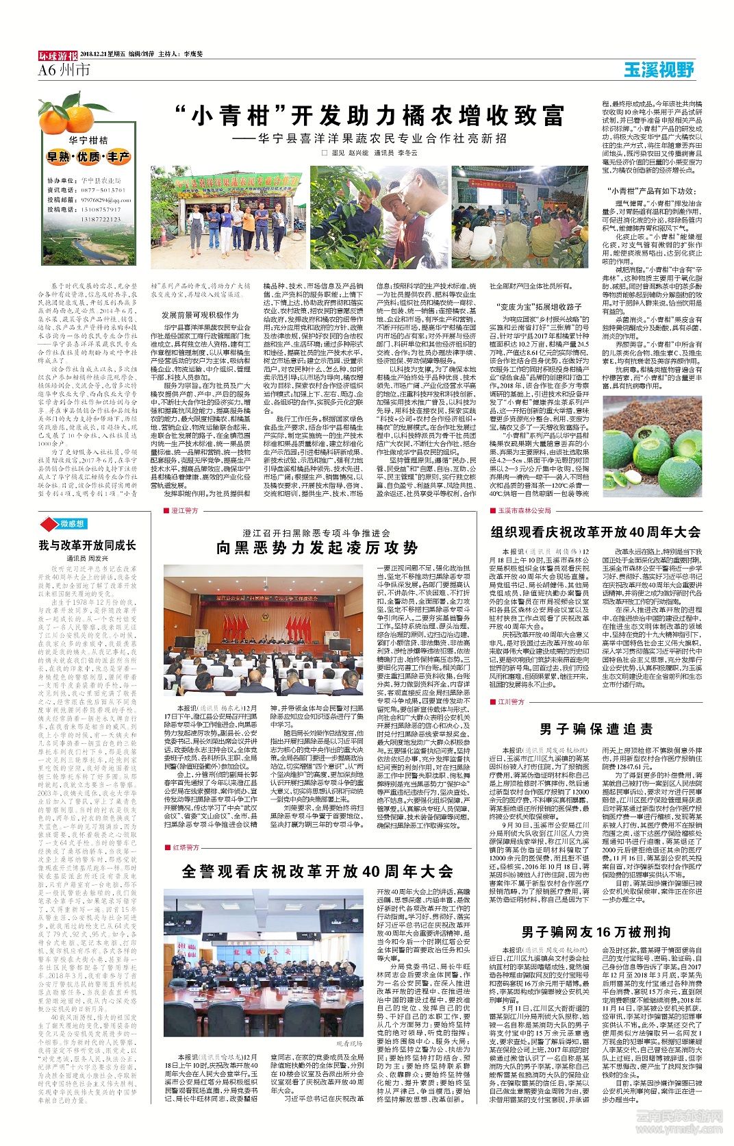 為響應(yīng)國家“鄉(xiāng)村振興戰(zhàn)略”的實(shí)施和云南省打好“三張牌”的號(hào)召,針對(duì)華寧縣2017年柑橘累計(jì)種植面積達(dá)10.2萬畝,柑橘產(chǎn)量24.5萬噸,產(chǎn)值達(dá)8.61億元的實(shí)際情況,該合作社結(jié)合自身優(yōu)勢(shì),在做好為農(nóng)服務(wù)工作的同時(shí)積極投身柑橘產(chǎn)業(yè)“綠色食品”品牌的創(chuàng)建和打造工作。2018年,該合作社在多方考察調(diào)研的基礎(chǔ)上,引進(jìn)技術(shù)和設(shè)備開發(fā)了“小青柑”健康養(yǎng)生茶系列產(chǎn)品,這一開拓創(chuàng)新的重大舉措,意味著更多資源充分整合、利用、變廢為寶,橘農(nóng)又多了一天增收致富路子。