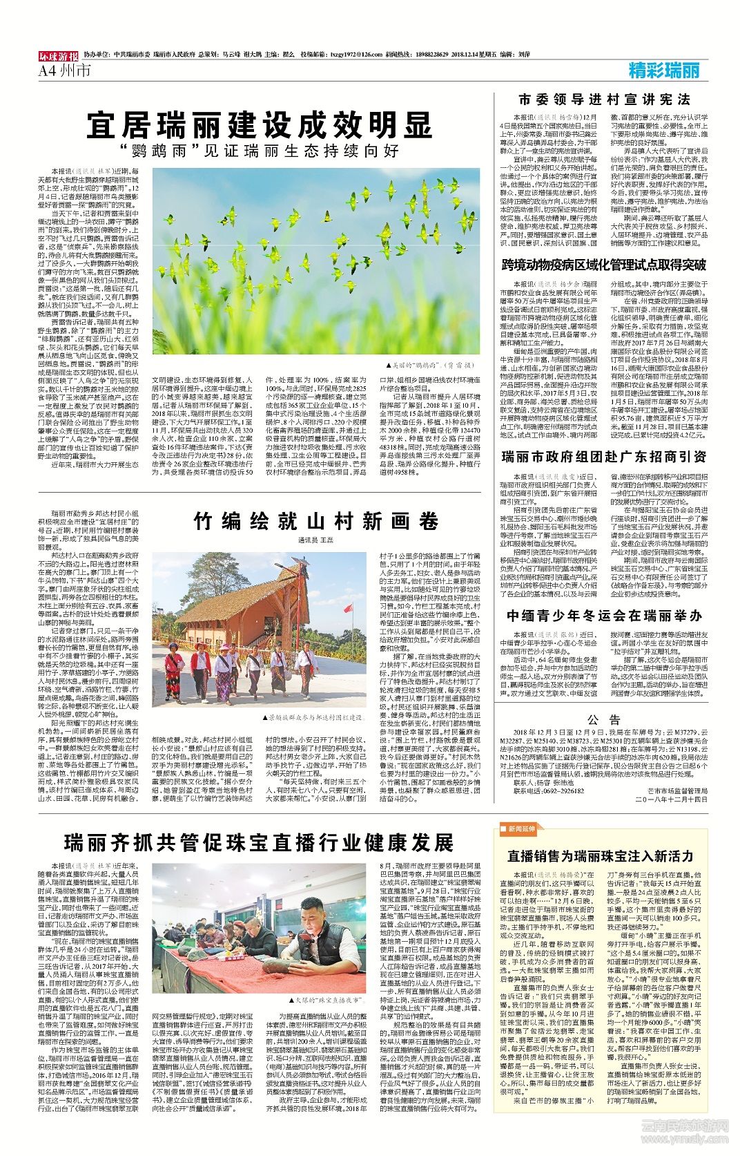 近年來,瑞麗市大力開展生態(tài)文明建設(shè),生態(tài)環(huán)境得到修復(fù),人居環(huán)境得到提升。這座中緬邊境上的小城變得越來越美,越來越宜居。記者從瑞麗市環(huán)保局了解到,2018年以來,瑞麗市狠抓生態(tài)文明建設(shè),下大力氣開展環(huán)保工作。1至11月,環(huán)保局共出動執(zhí)法人員320余人次,檢查企業(yè)110余家,立案查處16件環(huán)境違法案件,下達《責(zé)令改正違法行為決定書》28份,依法責(zé)令26家企業(yè)整改環(huán)境違法行為,共受理各類環(huán)境信訪投訴50件,處理率為100%,結(jié)案率為100%。與此同時,環(huán)保局完成2825個污染源的逐一清理核查,建立完成包括365家工業(yè)企業(yè)單位、15個集中式污染治理設(shè)施、4個生活源鍋爐、8個入河排污口、220個規(guī)?;笄蒺B(yǎng)殖場的清查庫,并通過上級普查機構(gòu)的質(zhì)量核查。環(huán)保局大力推進農(nóng)村垃圾收集處理、污水收集處理、衛(wèi)生公廁等工程建設(shè)。目前,全市已經(jīng)完成中緬銀井、芒秀農(nóng)村環(huán)境綜合整治示范項目,弄島口岸、姐相鄉(xiāng)國境沿線農(nóng)村環(huán)境連片綜合整治項目。