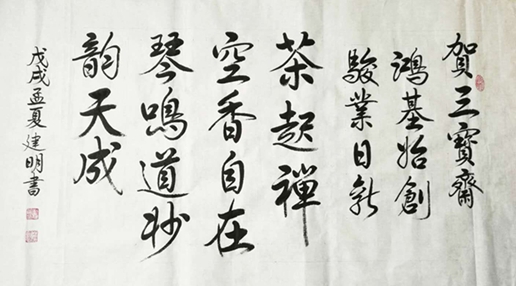彭建明先生楷書,歐顏兼收,美觀大方;行書,行筆流暢,自然灑脫;隸書,蠶雁靈動(dòng),波折自然。其作品深受消費(fèi)者喜愛。