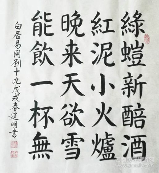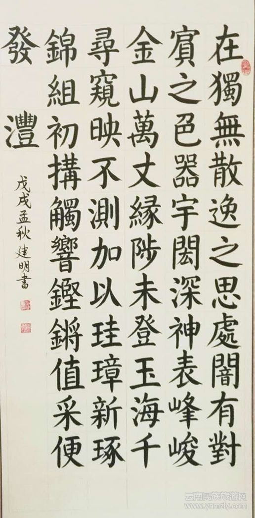彭建明自幼喜好書畫,在校時(shí)擅攻水粉人物畫和美術(shù)字。工作后多次參加大型展覽,擔(dān)任文字書寫和美術(shù)裝璜工作。繪制機(jī)械設(shè)計(jì)圖紙,練就了一手標(biāo)準(zhǔn)俊秀的仿宋字體。退休后,努力學(xué)習(xí)書法傳統(tǒng)理論,致力于楷書(顏楷、歐楷),行書和隸書的學(xué)習(xí)和創(chuàng)作。近幾年來(lái),多次應(yīng)邀參加多家銀行為客戶書寫新春聯(lián)的活動(dòng)。2012年12月在昆明大觀公園舉辦個(gè)人書法展。