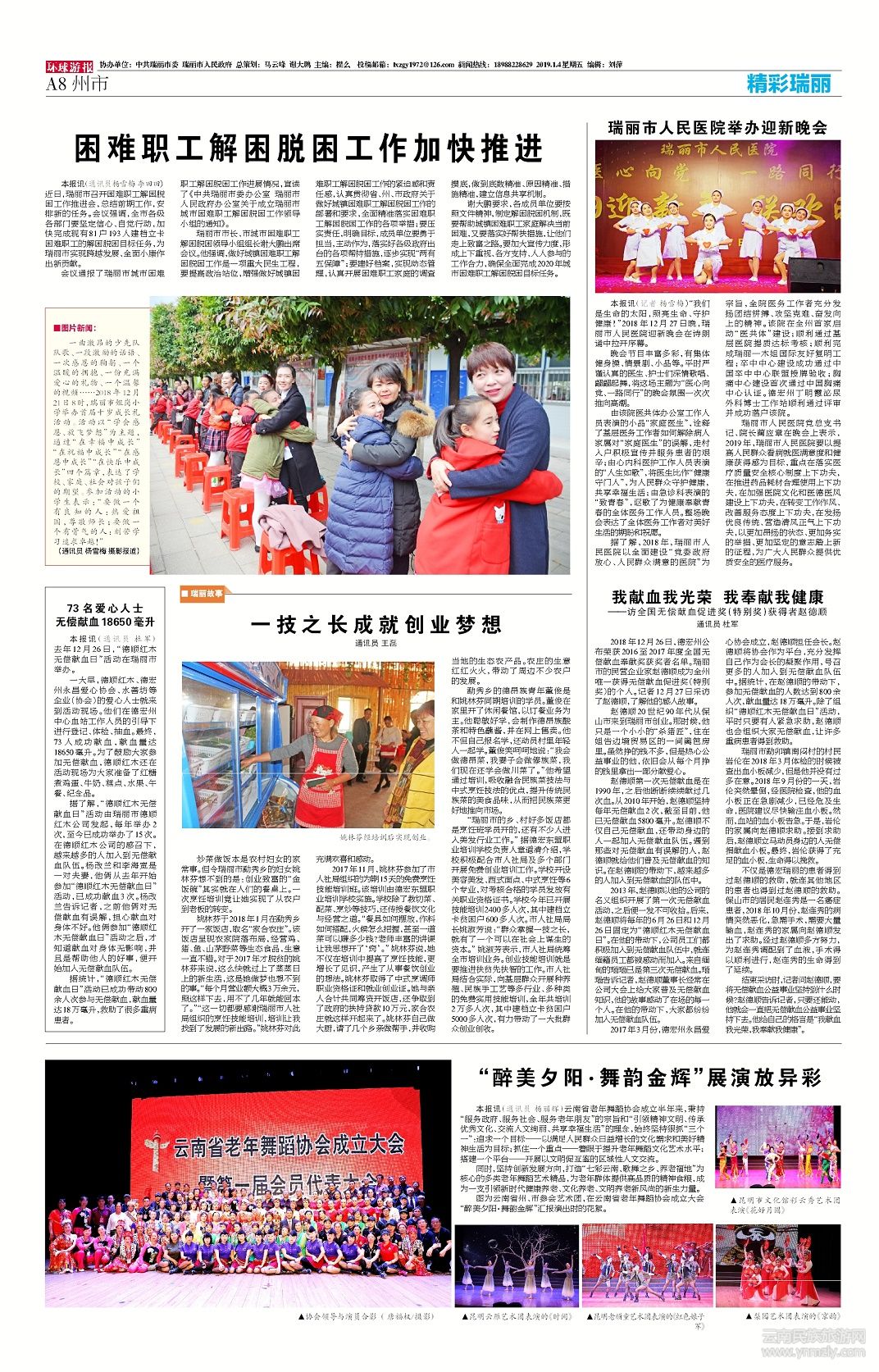 圖為云南省州、市參會(huì)藝術(shù)團(tuán),在云南省老年舞蹈協(xié)會(huì)成立大會(huì) “醉美夕陽·舞韻金輝”匯報(bào)演出時(shí)的花絮。(文章來源環(huán)球游報(bào)2019年1月4日第1172期A8版)