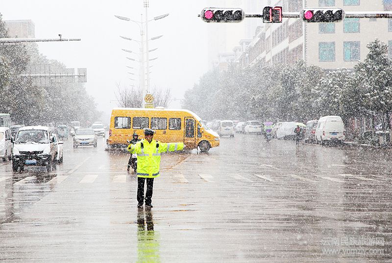 2018年12月29日,宣威境內(nèi)普降中到大雪。對(duì)于文藝青年來說,大雪紛飛很是讓人舒暢愉悅;對(duì)于農(nóng)民群眾來說,這場(chǎng)降雪預(yù)示了“瑞雪兆豐年”的祈盼;但對(duì)于交警人來說,保障這場(chǎng)低溫冰雪里的路暢人安卻顯得尤為急迫。他們?yōu)槁窌橙税驳呢?zé)任和使命默默值守,用低溫冰雪映照從警路上的忠誠(chéng)、鑄就擔(dān)當(dāng)奉獻(xiàn)的警魂。