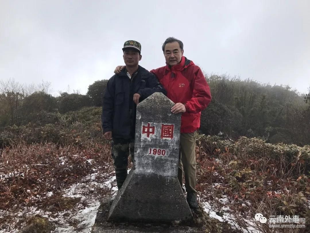 在新中國(guó)成立70周年之際,國(guó)務(wù)委員兼外長(zhǎng)王毅于2019年2月17日徒步沿邊界線踏勘中緬邊界,查看新中國(guó)第一塊界碑。