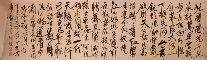 趙家瑞先生從在教育崗位起,就熱愛國(guó)學(xué),長(zhǎng)期學(xué)習(xí)書法、繪畫,利用工作之余游歷過大江南北、長(zhǎng)城內(nèi)外,讀萬卷書,行萬里路。幾十年奉行“綠水青山就是金山銀山,踏遍青山人未老,風(fēng)景這邊獨(dú)好”的信念,其書畫藝術(shù)水平日臻成熟。
