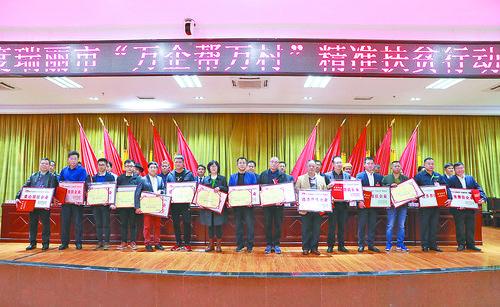 會(huì)議宣讀了《關(guān)于對(duì)瑞麗市2018年度“萬(wàn)企幫萬(wàn)村”精準(zhǔn)扶貧行動(dòng)中貢獻(xiàn)突出企業(yè)和商會(huì)進(jìn)行表彰的決定》。