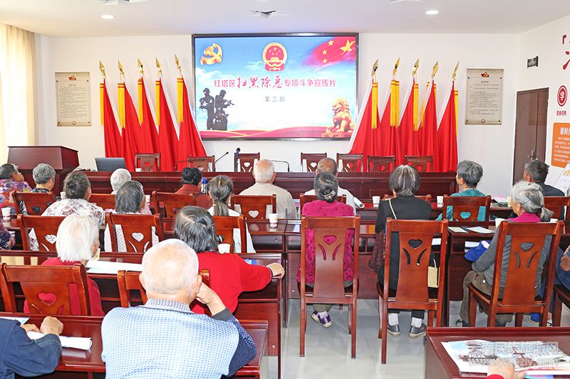 在活動(dòng)中,社區(qū)民警馮存煥向全體人員傳達(dá)中央、省、市、區(qū)相關(guān)掃黑除惡專項(xiàng)斗爭的精神及要求,介紹紅塔區(qū)掃黑除惡專項(xiàng)斗爭工作的開展情況,并詳細(xì)講解鳳凰街道、紅塔山派出所掃黑除惡打擊整治的重點(diǎn),帶領(lǐng)大家學(xué)習(xí)掃黑除惡相關(guān)知識(shí),詳細(xì)講解關(guān)于黑惡勢(shì)力存在種種現(xiàn)象,讓大家了解什么是黑,什么是惡,“村霸”特征和黑惡勢(shì)力“保護(hù)傘”包括哪些方面,什么是“惡勢(shì)力”組織及“黑社會(huì)性質(zhì)組織”,農(nóng)村地區(qū)的打擊重點(diǎn)、涉黑涉惡重點(diǎn)領(lǐng)域。并告知大家如果發(fā)現(xiàn)黑惡勢(shì)力在身邊要積極舉報(bào),知曉舉報(bào)方式,遇到軟暴力行為該如何處置,遇到黑惡勢(shì)力時(shí)該如何在保護(hù)自身安全的情況下進(jìn)行檢舉揭發(fā)。