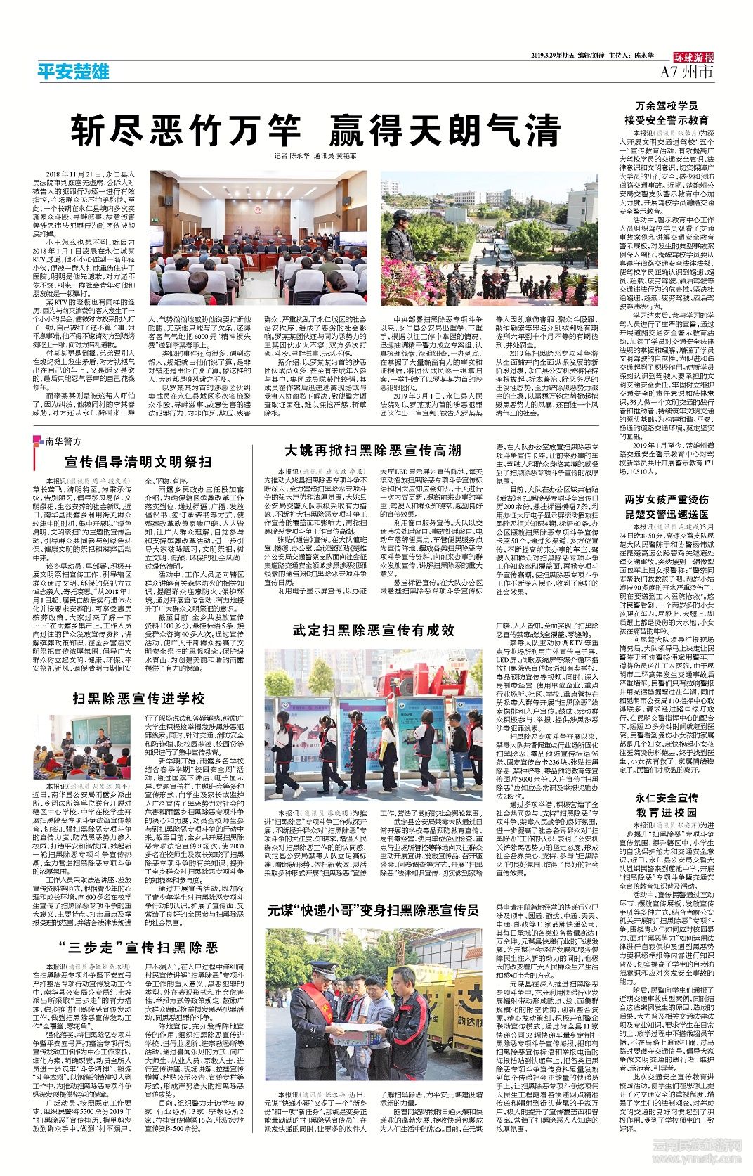 2019年掃黑除惡專項(xiàng)斗爭將從全面鋪開向全面縱深發(fā)展的新階段過渡,永仁縣公安機(jī)關(guān)將保持連根拔起、標(biāo)本兼治、除惡務(wù)盡的壓倒性態(tài)勢,全力鏟除黑惡勢力滋生的土壤,以雷霆萬鈞之勢掀起摧毀黑惡勢力的風(fēng)暴,還百姓一個(gè)風(fēng)清氣正的社會(huì)。(文章來源環(huán)球游報(bào)2019年3月29日第1182期A7版)