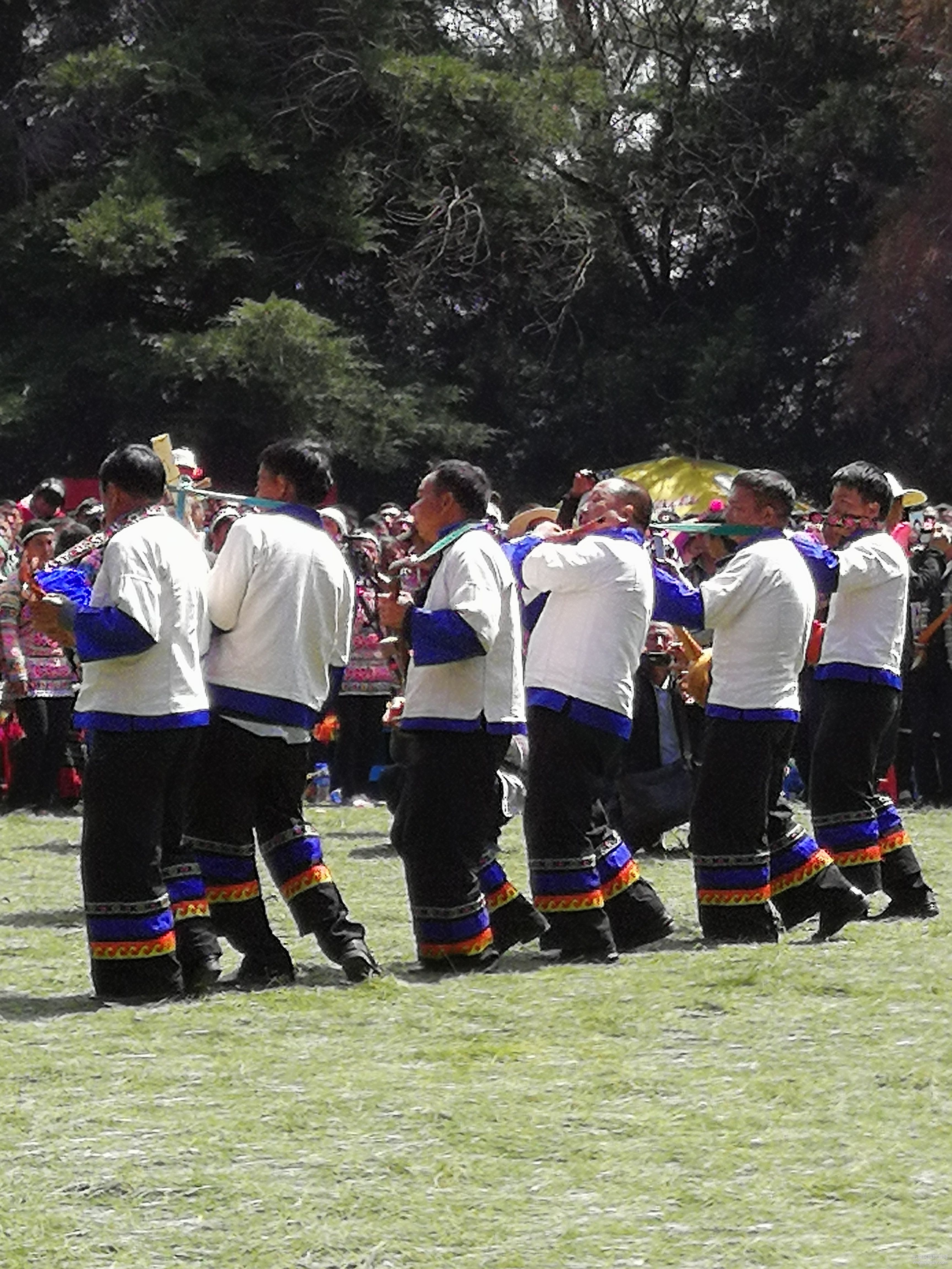 彝家無(wú)論男女老少都會(huì)唱打歌調(diào)。一種是傳統(tǒng)的打歌調(diào),就是流傳在彝族人民中間的傳統(tǒng)史詩(shī)。打歌調(diào)一般分上支、下支。上支為比喻,下支為敘事。打歌還有一定的規(guī)矩,開(kāi)始時(shí),由村寨里有聲望的老人開(kāi)場(chǎng)吹響蘆笙,人們圍著打歌場(chǎng)呼應(yīng):“嗚哇——喂!”呼應(yīng)三次后,才在蘆笙、笛子的指揮下,從原地起步,緩緩進(jìn)入歌場(chǎng),開(kāi)始進(jìn)場(chǎng)的是老人,當(dāng)打歌熱鬧起來(lái)的時(shí)候,老人們退場(chǎng),青年們大顯身手,圓心越來(lái)越大,邊唱邊跳。如是節(jié)日期間的打歌,往往是歌舞不止,通宵達(dá)旦。打歌已成為彝族人民的傳統(tǒng)歌舞,“彝家戶(hù)戶(hù)有火塘,彝家處處是歌場(chǎng)”。在彝區(qū)每一個(gè)彝家山寨都有打歌場(chǎng),無(wú)論是山頂埡口、田間平地、農(nóng)家場(chǎng)院、廟宇殿堂都可作為歌場(chǎng)。彝族人民逢年過(guò)節(jié),婚喪嫁娶,農(nóng)事閑暇,朝山廟會(huì)都要打歌。音樂(lè)彝族的民間音樂(lè)較有特色的是傳統(tǒng)的嗩吶,俗稱(chēng)“鼓吹”、“碗口”和“喇叭”。分大筒、大號(hào)、小號(hào)三種。在歡樂(lè)喜慶場(chǎng)所,嗩吶聲熱情奔放,高亢激昂,增添熱鬧氣氛,使人精神振作;在悲哀痛苦場(chǎng)合,嗩吶聲婉轉(zhuǎn)深沉,嗚咽悲憫,造成哀傷而肅穆的氣氛。