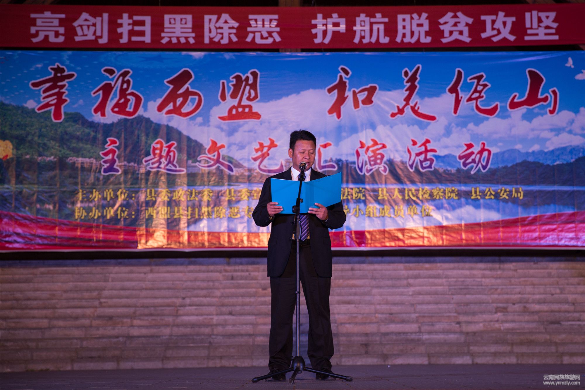 3月29日晚,由西盟縣委、政府主辦,縣委政法委、宣傳部及縣公安局、檢察院、法院等部門(mén)和單位承辦的“幸福西盟·和美佤山”掃黑除惡主題文藝匯演,首場(chǎng)演出在江三木洛廣場(chǎng)隆重舉行??h委常委、組織部長(zhǎng)石字國(guó)出席活動(dòng),并宣布文藝匯演活動(dòng)開(kāi)始。