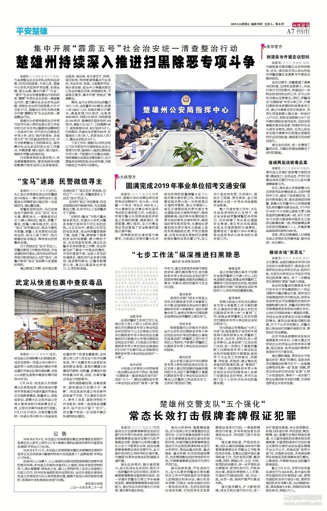 集中開展“霹靂五號”社會治安統(tǒng)一清查整治行動 楚雄州持續(xù)深入推進掃黑除惡專項斗爭