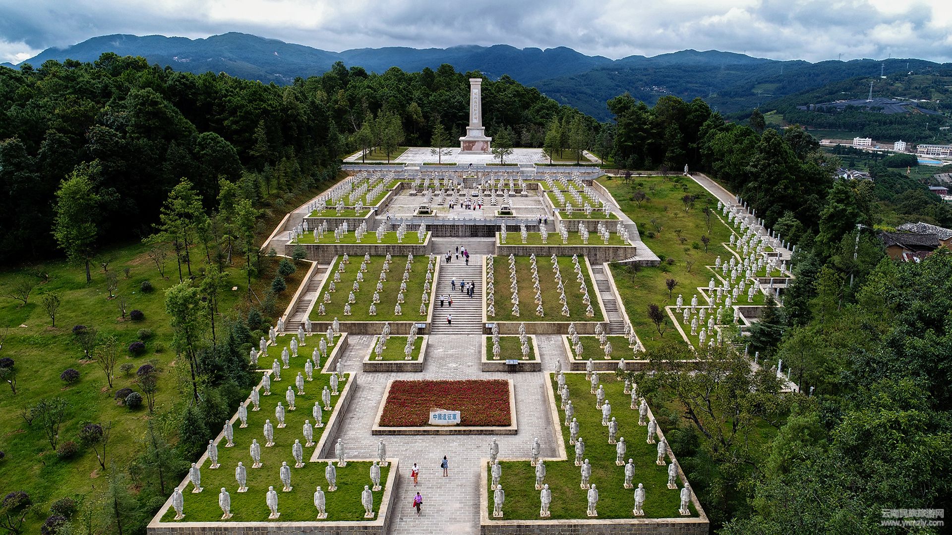 最先映入眼簾的,是中國遠(yuǎn)征軍雕塑群,雕塑群由雕塑家李春華創(chuàng)作并捐贈。雕塑群位于滇西抗戰(zhàn)主戰(zhàn)場松山主峰子高地南側(cè),占地約17500平方米,由402座單體雕塑組成。