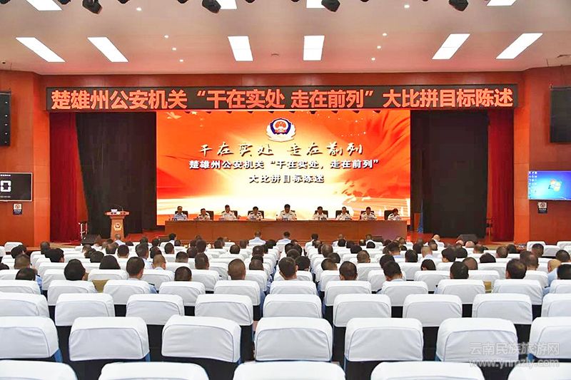 本報訊(通訊員 劉建春)近日,楚雄州公安局局長馬聞在州公安局警官禮堂主持召開楚雄州公安機關“干在實處,走在前列”大比拼目標陳述會議。州公安局黨委班子成員和州自然資源公安局、十縣(市)公安局主要領導,采取口頭陳述和PPT演示相結合的方式,分別就2019年度主責指標和標兵、標桿及確定的主要理由,追趕標兵、爭做標兵完成目標任務的措施決心進行了陳述。馬聞作點評及總結發(fā)言。
