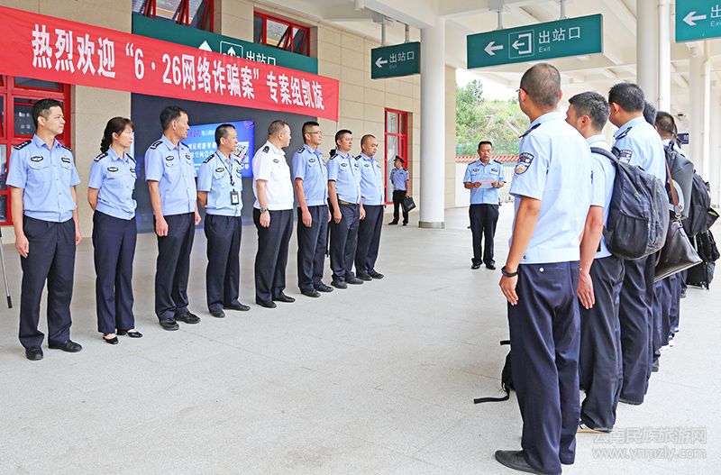 本報(bào)訊(通訊員 欒進(jìn))7月23日16時(shí)40分,伴隨著急促的鳴笛聲,由廣州南站至楚雄站的動車緩緩駛?cè)胝九_,車門打開,英勇威武的姚安“6·26網(wǎng)絡(luò)詐騙案”專案組民警押解著5名電信網(wǎng)絡(luò)詐騙犯罪嫌疑人走出車廂,站臺上瞬間響起熱烈的掌聲……楚雄州公安局黨委委員、副局長戚玉剛率州局相關(guān)部門、姚安縣公安局主要領(lǐng)導(dǎo)在站內(nèi)整齊列隊(duì),歡迎姚安“6·26網(wǎng)絡(luò)詐騙案”專案組戰(zhàn)友凱旋歸來。