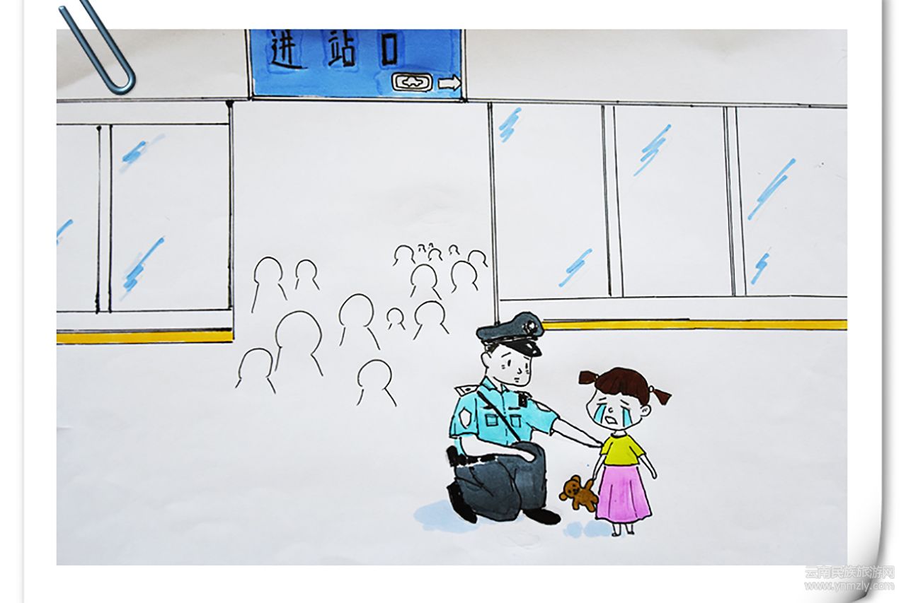 隨著暑假到來,客流激增,開遠(yuǎn)鐵路公安處各車站派出所受理旅客求助尋找小孩的警情也與日俱增。為不再讓迷途幼童與家人分離,開遠(yuǎn)鐵路公安處90后民警杜威以此為創(chuàng)作原型,結(jié)合當(dāng)前開展的“平安站車路 金盾護(hù)你行”專項(xiàng)行動(dòng),創(chuàng)新宣傳模式,將乘車安全知識(shí)繪制成旅客群眾喜聞樂見、簡(jiǎn)潔深刻的漫畫,暖心提醒旅客出行安全。