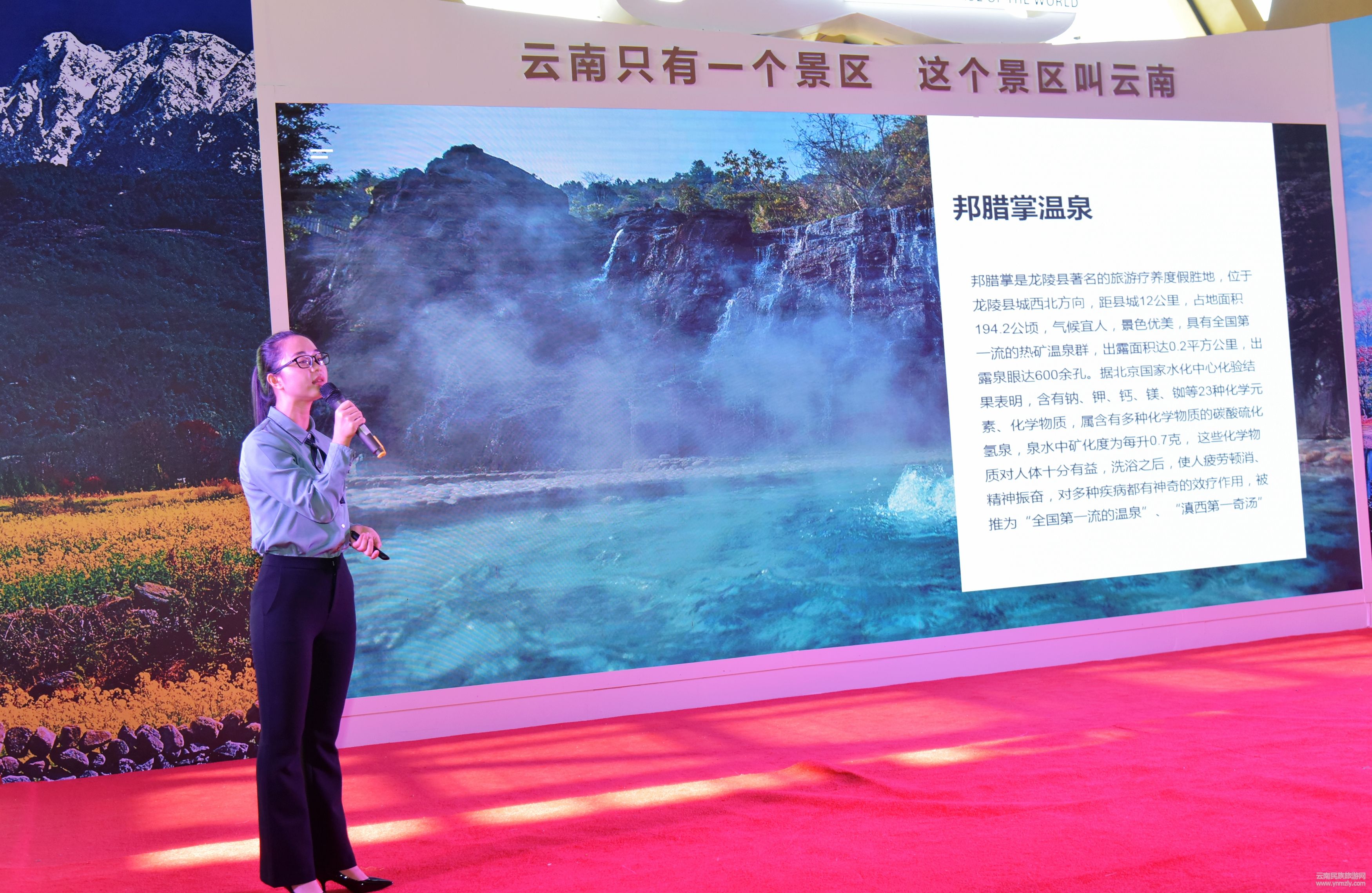 在推介會上,保山市人民政府副市長宋光興推介了保山市情、厚重的歷史文化、滇西抗戰(zhàn)紀念館、交通、、秀美山川、世界自然遺產(chǎn)高黎貢山、騰沖火山群、美麗富潞江壩、熱海溫泉以及“騰越翡翠”等當?shù)赜忻奶厣a(chǎn)品。推介會還邀請了騰沖旅游服務中心人員對保山旅游線路產(chǎn)品推介進行推介。