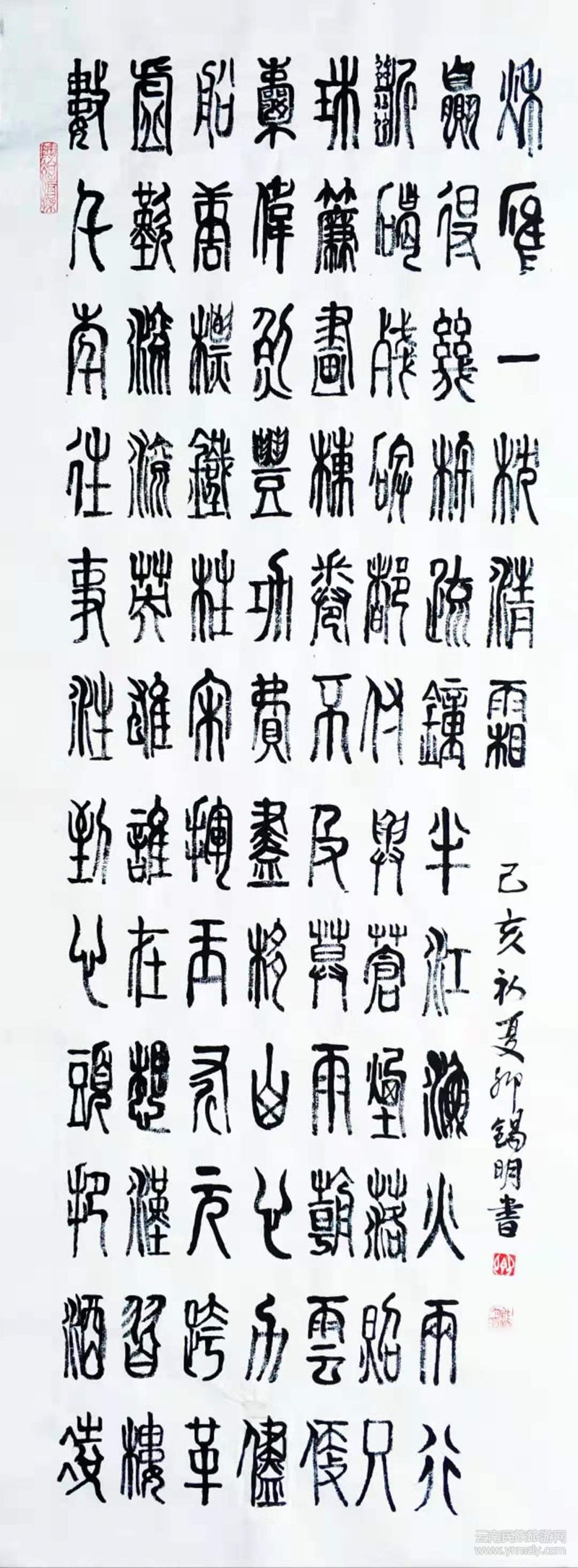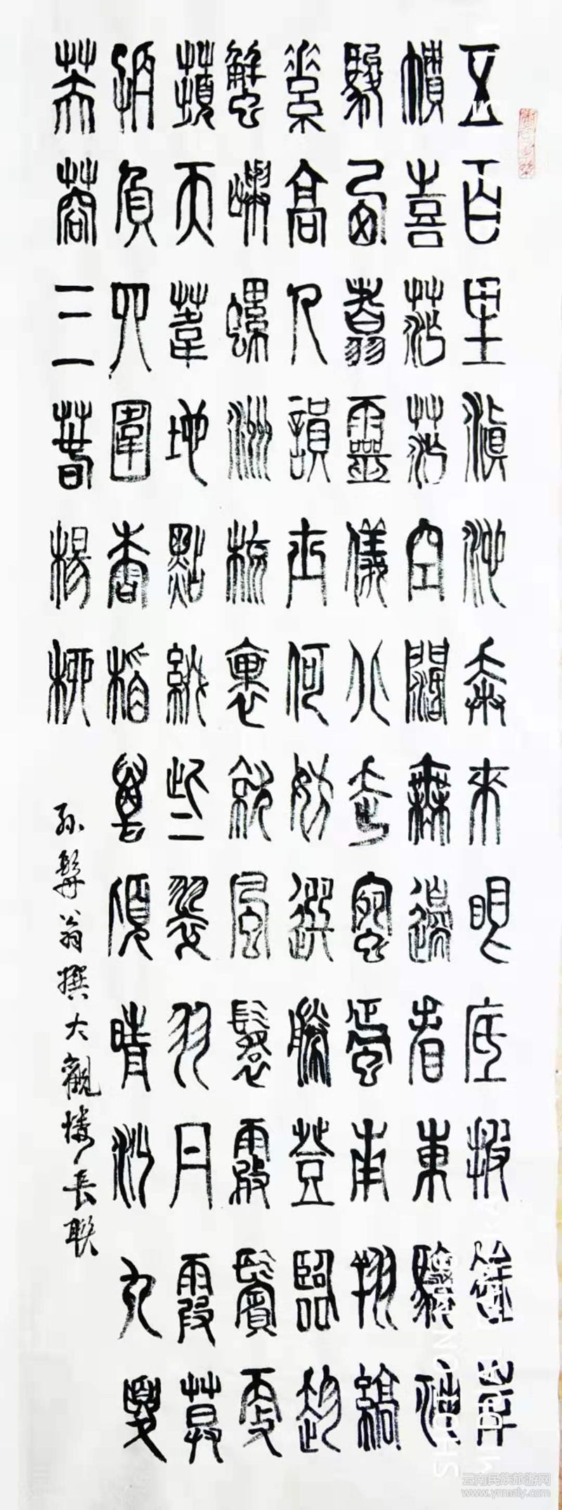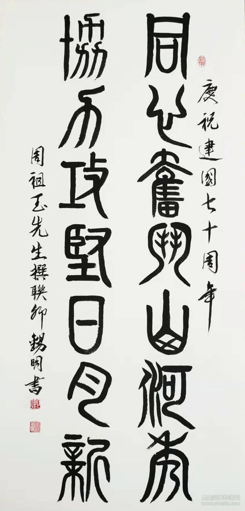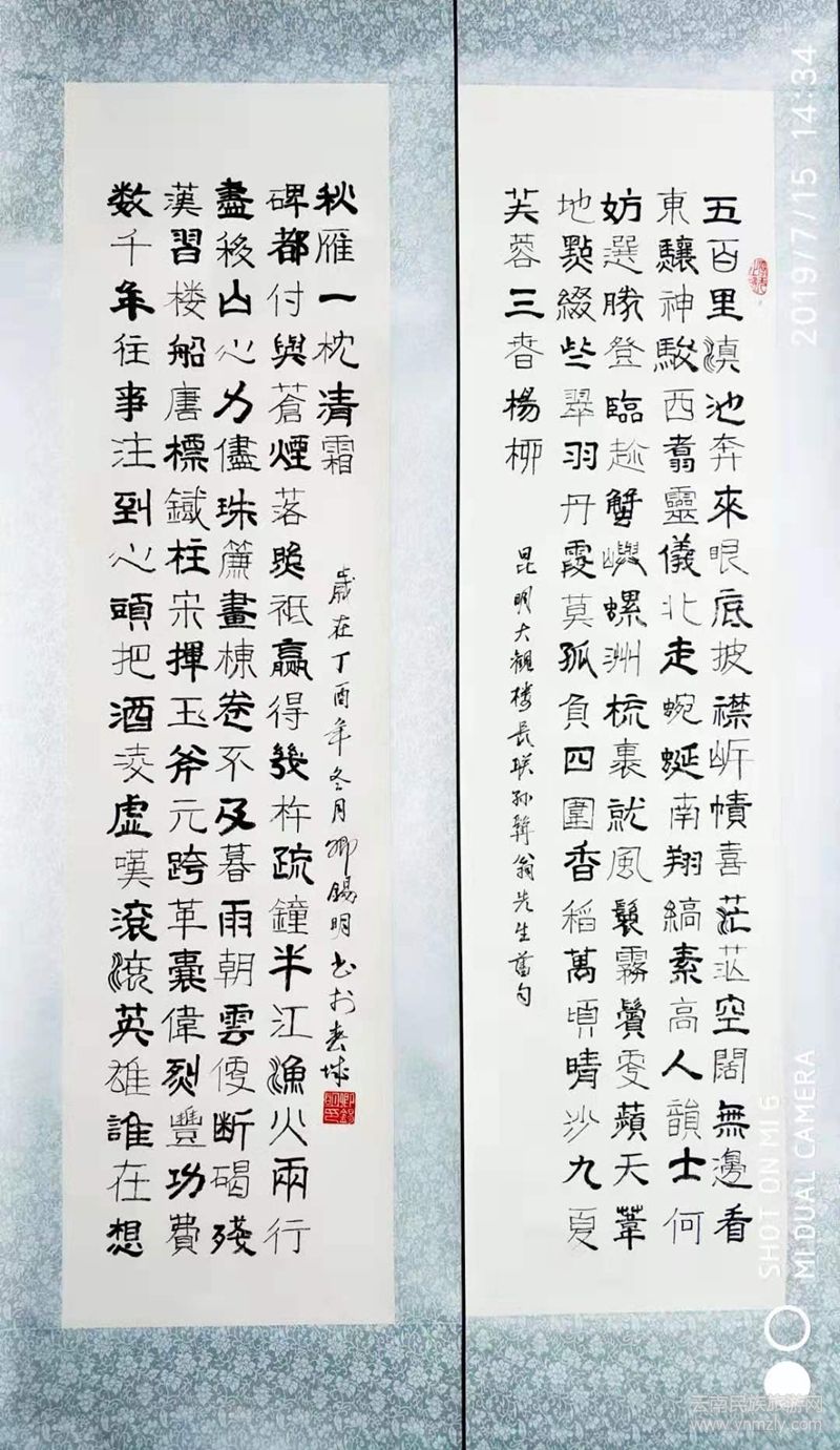 2019年6月,在參加中國書法陶瓷評委會等三個單位組織的全國建國七十周年《中華頌》書畫大賽中,隸書《昆明大觀樓長聯(lián)》榮獲全國書法大賽“金獎”,同時被授予“人民杰出藝術(shù)家”榮譽稱號,被收藏界認定為二級書法師,作品備受國內(nèi)外人士青睞。