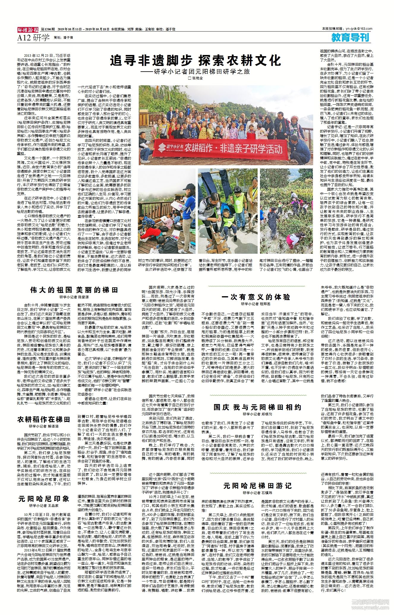文化是一個(gè)國家、一個(gè)民族的靈魂。文化興國運(yùn)興,文化強(qiáng)民族強(qiáng)。近日,由世代教育承辦的“追尋非遺腳步、探索農(nóng)耕文化”小記者團(tuán)走進(jìn)了世界遺產(chǎn)之地——元陽梯田!開啟了為期四天三晚的研學(xué)旅行,本次研學(xué)旅行也得到了云南省非物質(zhì)文化遺產(chǎn)保護(hù)中心的指導(dǎo)與支持。