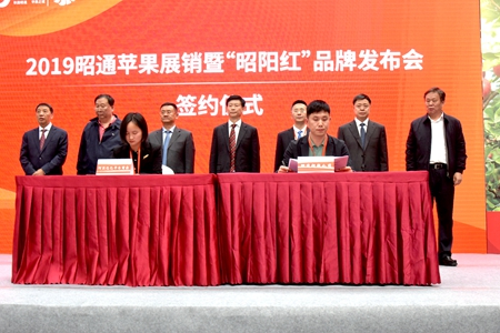 隨后,昭通市委書記楊亞林與昭通市人民政府市長郭大進等領導一起見證 “昭陽紅”第一箱蘋果的正式下線。