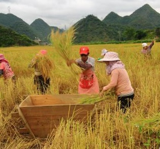 移步回到游客中心,已是正午時(shí)分,草草飽食了車上自備的干糧,又急匆匆趕往八寶壩子,準(zhǔn)備去拍拍稻農(nóng)打谷子的場(chǎng)面。