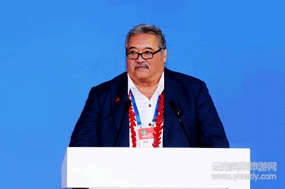 ▲薩摩亞旅游部部長薩垃.法塔.皮納蒂致辭