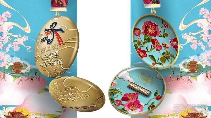 同時(shí)還公布了完賽獎(jiǎng)牌3D效果圖亮相,引發(fā)現(xiàn)場(chǎng)高潮。歲月流轉(zhuǎn),時(shí)間飛逝,昆馬已迎來第九年,本次半馬及10公里完賽獎(jiǎng)牌以懷表作為設(shè)計(jì)原型,取其“鐘情、鐘意”之意,這是對(duì)跑者的表白,更是對(duì)昆明這座城市的告白。獎(jiǎng)牌外部以線條勾勒出“山高云淡,山花盛開”的景象,打開懷表獎(jiǎng)牌,昆明市市花——山茶花盡現(xiàn)眼前,正中是一個(gè)可撥動(dòng)的數(shù)字撥盤,六位數(shù)字可任意組合出跑者的完賽時(shí)間,記錄下咬牙堅(jiān)持的榮耀時(shí)刻。