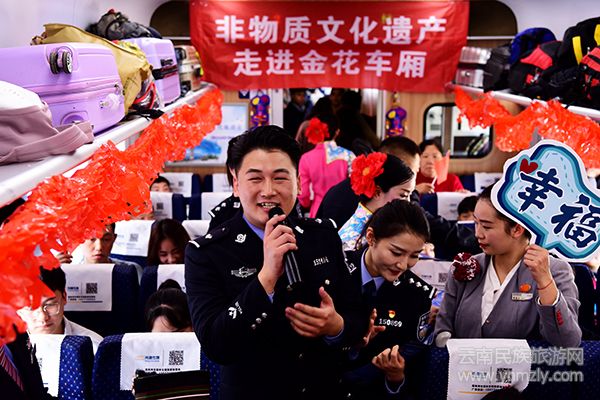 “挺意外的,第一次在列車上觀看警官們表演的節(jié)目,還感受到了云南少數(shù)民族原生態(tài)音樂的獨(dú)特魅力,感覺好溫馨,也祝大家在新的一年里心想事成,萬事如意!”和丈夫回云南玉溪老家過年的旅客趙女士激動(dòng)地說道。