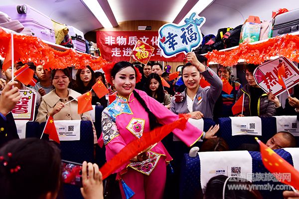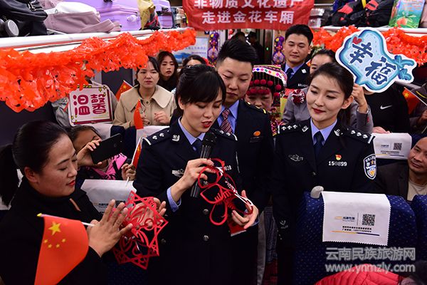 云南民族旅游網(wǎng)訊(通訊員 徐紅 杜威)新春佳節(jié)即將來臨,由河口開往昆明的C8314 次“綠巨人”動(dòng)車上,云南開遠(yuǎn)鐵路公安處和昆明客運(yùn)段為旅客精心準(zhǔn)備的一場(chǎng)“列車春晚”正在精彩上演,飽含中華優(yōu)秀傳統(tǒng)文化元素的展演體驗(yàn)和互動(dòng)活動(dòng)紛紛亮相,數(shù)千名旅客與鐵路民警共賀新春,讓回家旅途更有“非遺年味”。