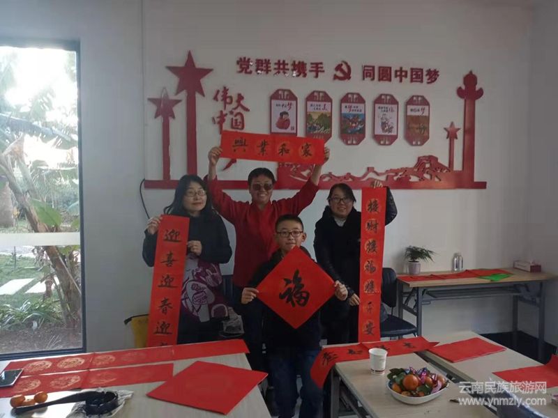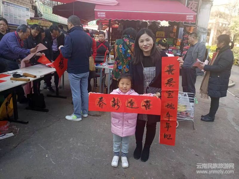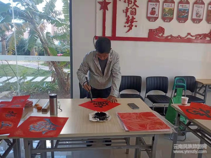 “買(mǎi)的春聯(lián),感覺(jué)上始終不如手寫(xiě)的有過(guò)年的氛圍。今天社區(qū)組織這個(gè)免費(fèi)寫(xiě)春聯(lián)進(jìn)小區(qū)活動(dòng),我讓老師給我寫(xiě)了三幅,一幅貼在這邊門(mén)上,另外兩幅過(guò)幾天回老家貼在老家的門(mén)上去……”現(xiàn)住昆明市銀河北庭來(lái)自宜良縣的趙女士,與鄰居們一邊晾曬著剛寫(xiě)好的春聯(lián),一邊開(kāi)心得說(shuō)。1月12日,五華區(qū)紅云街道幸福家園社區(qū)再次邀請(qǐng)省書(shū)協(xié)的韓立宇、張德華、卿錫明、曾艷四位書(shū)法家走進(jìn)小區(qū),為轄區(qū)居民免費(fèi)書(shū)寫(xiě)贈(zèng)送春聯(lián),贏得了轄區(qū)群眾一片贊譽(yù)聲。