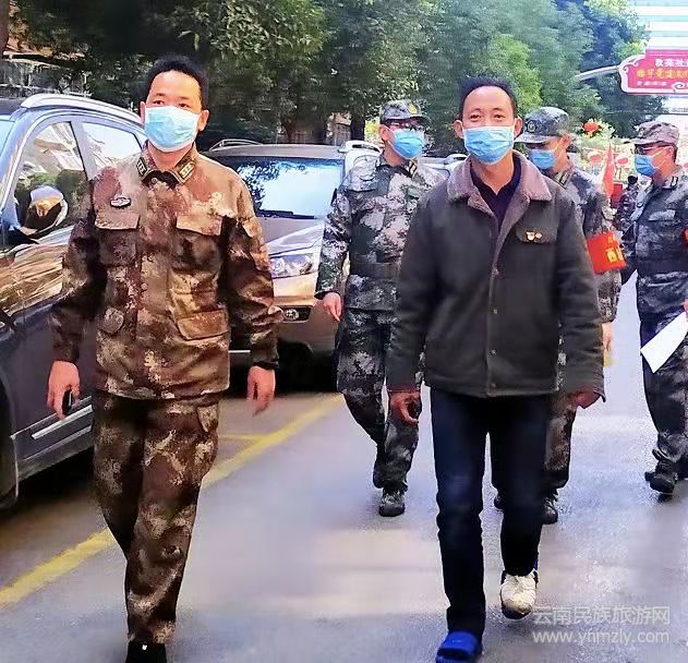 隨著新型冠狀病毒疫情蔓延的加劇,昆明進入了全城封閉式管理模式,這對于多天奮戰(zhàn)在抗疫一線的社區(qū)干部職工來說,工作任務(wù)急劇加重,繼續(xù)入戶敲門排查、對重點人員進行面對面詢問記錄、協(xié)助物管值守小區(qū)出入口把關(guān)登記,機關(guān)下沉干部和社區(qū)干部每天都要工作到深夜。都是自己的兄弟姐妹,他看在眼里疼在心里,立即調(diào)動轄區(qū)民兵應(yīng)急分隊,支援社區(qū)應(yīng)對日益繁重的疫情防控工作,從此寂靜的街道、廣場、小區(qū)又多了一道亮麗的風(fēng)景-迷彩綠。