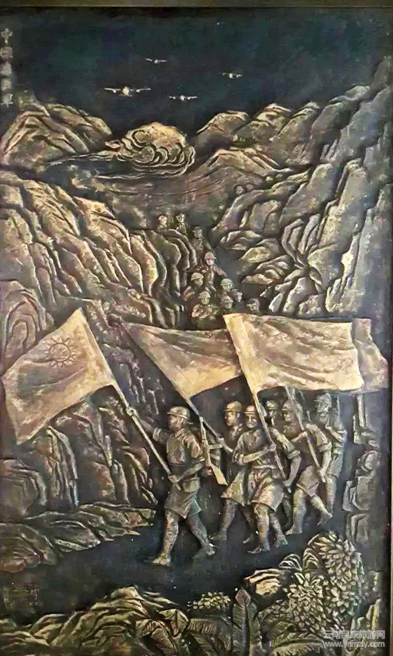 在我的辦公樓里懸掛著四幅愛國題材的銅雕,內(nèi)容、主題由我自己選定,古代兩幅,一幅是“匈奴未滅,何以家為”的漢代名將霍去病,另一幅是“不教胡馬度陰山”的飛將軍李廣。現(xiàn)代的兩幅,一幅是中國人民志愿軍跨過鴨綠江,面向東方的一幅便是《中國遠(yuǎn)征軍》。那是以一張中國遠(yuǎn)征軍從印度藍(lán)姆伽基地出征開始大反攻時的歷史照片作為藍(lán)本的銅雕,浮雕仍請中國美院徐靜達(dá)老師創(chuàng)作,我曾多次去他創(chuàng)作室及工場探討表現(xiàn)方式,記得當(dāng)初刻畫出征戰(zhàn)士的神情時,徐老師畫了幾張微笑的年輕戰(zhàn)士的面孔,我開始覺得不夠凝重,讓徐老師作了修改,營造了“風(fēng)蕭蕭兮易水寒,壯士一去兮不復(fù)返”的肅殺氣氛。待我開車跑上高速,忽然改變主意,覺得當(dāng)年這支大反攻的遠(yuǎn)征軍隊伍已與第一次入緬的隊伍不可同日而語,兵強(qiáng)馬壯、裝備精良,已有必勝信心,臉上應(yīng)有掃蕩日寇的豪氣,便立即打電話給徐老師讓他仍然改回生龍活虎的笑臉。