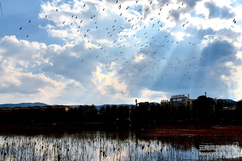 曾到昆明翠湖和大理洱海喂過海鷗的小家伙一聽,還不忘介紹:“聽聲音像海鷗呢,好多的海鷗,不會(huì)是昆明的、大理的跑到昌寧來(lái)了吧?”