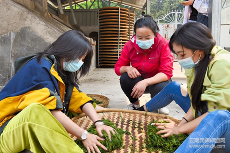 揉好茶,又開(kāi)始有樣學(xué)樣的對(duì)茶進(jìn)抖散、晾曬。一邊做著一邊交流,感慨看似簡(jiǎn)簡(jiǎn)單單的一杯茶有這么多環(huán)節(jié)。“這樣曬出來(lái)的茶,可只是普洱茶的原料。要做成普洱生茶、熟茶,還有好多工序。”一句話,更讓他們驚叫連連:真是做什么都不簡(jiǎn)單!