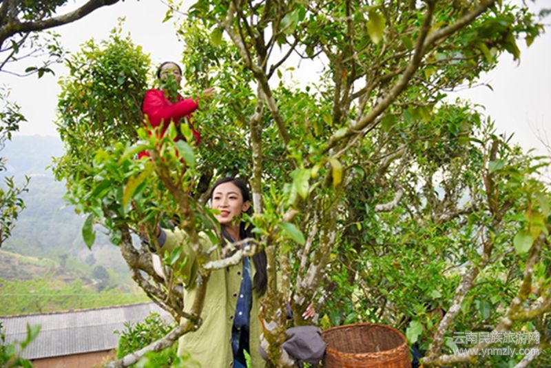 茶喝夠了,音樂(lè)聽(tīng)夠了,年輕的朋友們?cè)僖查e不住。于是,雖然明知爬樹是自己的弱項(xiàng),卻也要纏著“茶廚師”,讓她約著大伙,去體驗(yàn)一把爬上古茶樹采茶的樂(lè)趣。
