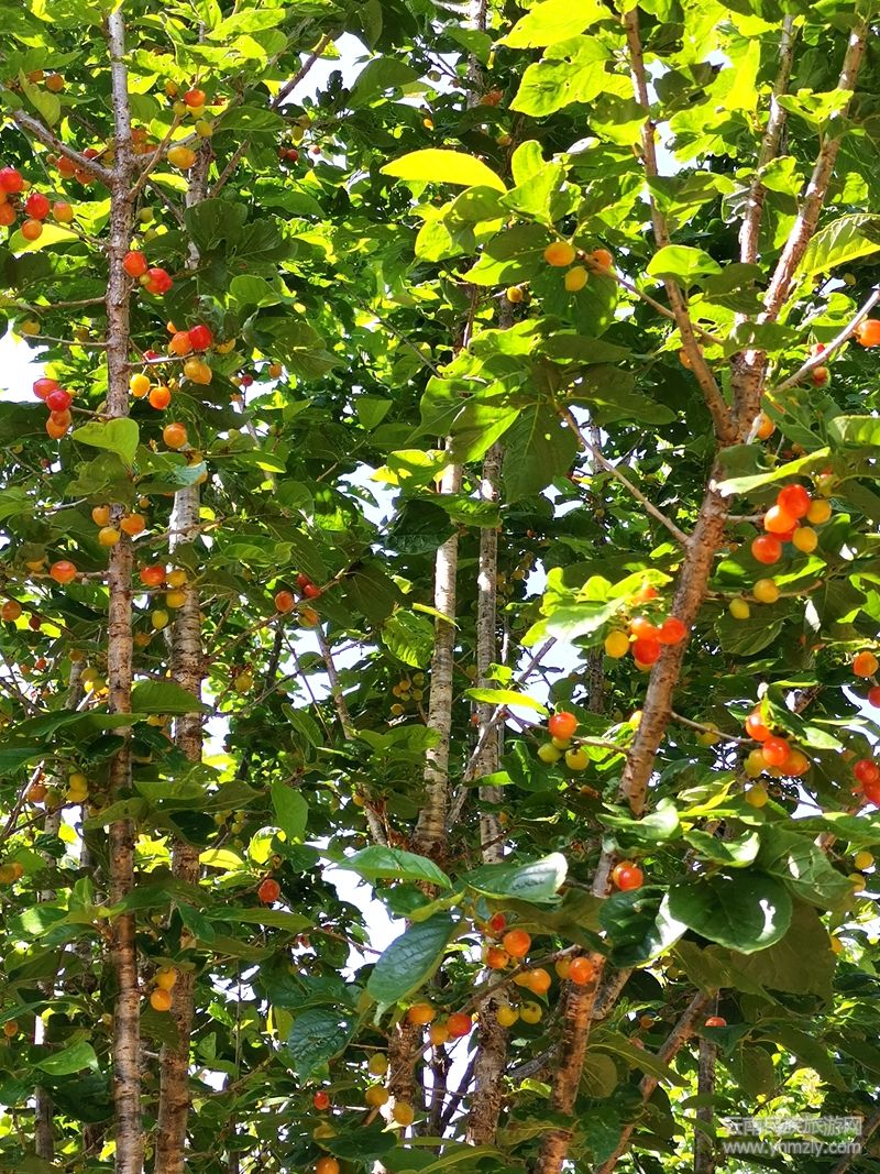 不知不覺,到了目的地,停了車,步行前往,經(jīng)過田間小路,向著櫻桃林進發(fā)??炜?,“櫻桃樹”!隨行同伴的喊聲突然眼前一亮,放眼望去,滿山綠色,原來不知不覺,已到櫻桃園。只見漫山遍野的櫻桃林中,一叢叢櫻桃樹郁郁蔥蔥,甚至有些農(nóng)人已在櫻桃園進行采摘售賣。