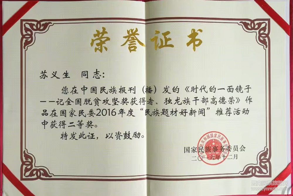 他撰寫的《時(shí)代的一面鏡子——記全國脫貧攻堅(jiān)貢獻(xiàn)獎(jiǎng)獲得者、獨(dú)龍族干部高德榮》長篇通訊,榮獲國家民委“2016年度民族題材好新聞二等獎(jiǎng)”;撰寫的《怎一個(gè)“情”字了得——高德榮的情和夢》一書,被國家新聞出版廣電總局列入《2017年農(nóng)家書屋重點(diǎn)出版物推薦名錄》;他參與撰寫的《獨(dú)龍?zhí)炻贰反笮驮瓌?chuàng)話劇,被文化部評(píng)為2018年國家舞臺(tái)藝術(shù)精品劇目;編輯出版《人民的一面旗幟——高德榮精神研討文集》一書,2019年10月,該書被國家圖書館收藏,并參與“致敬國家勛章和國家榮譽(yù)稱號(hào)獲得者”系列活動(dòng)展出。